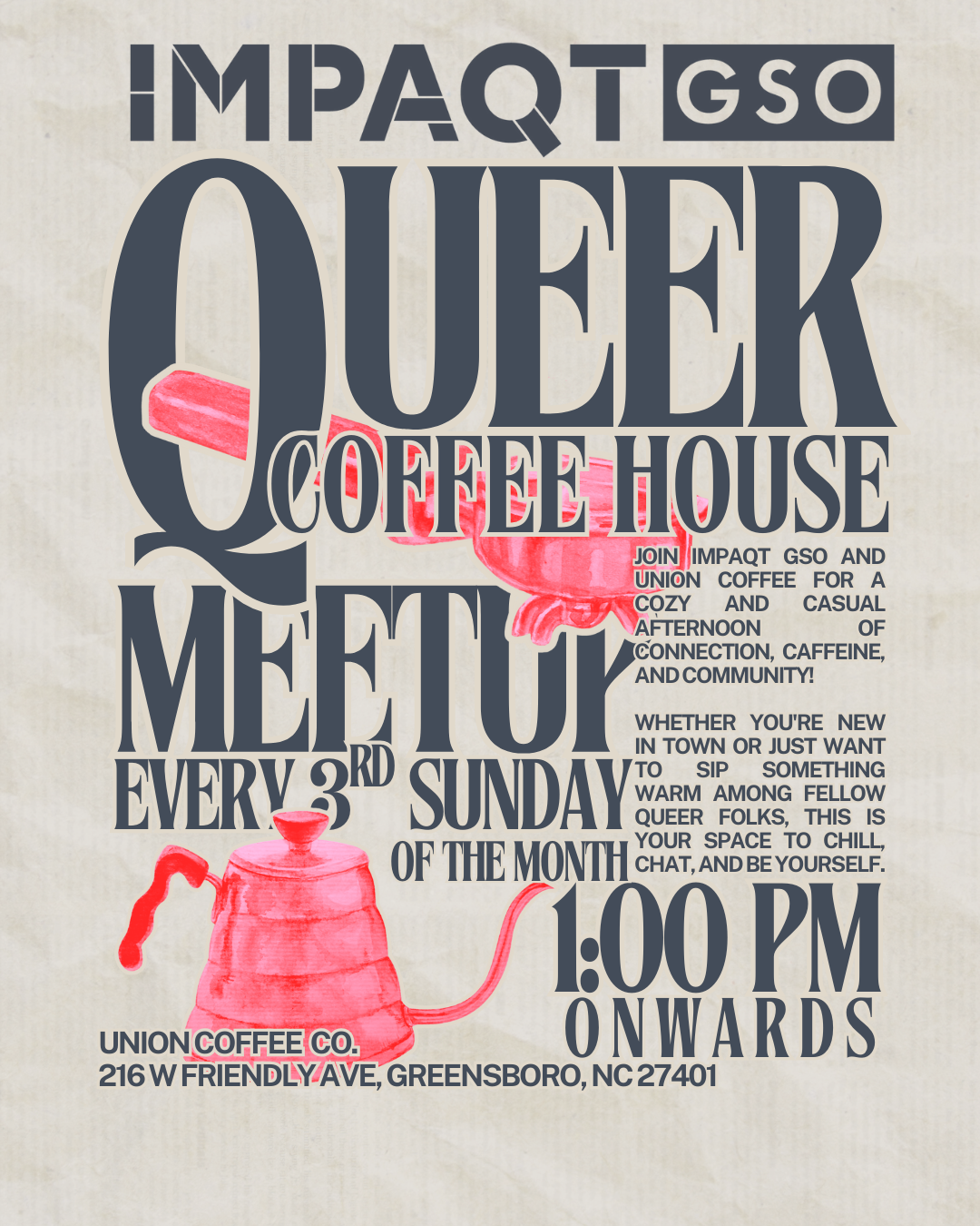 Throughout the year, IMPAQT GSO hosts a variety of events that build connection, celebrate identity, and strengthen community. From professional mixers and coffeehouse meetups to shows, music bingo, and our community walk, there's always something meaningful—and fun—happening. It all leads up to our signature event: the Greensboro Pride Festival.